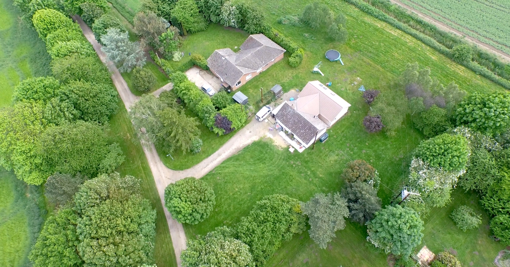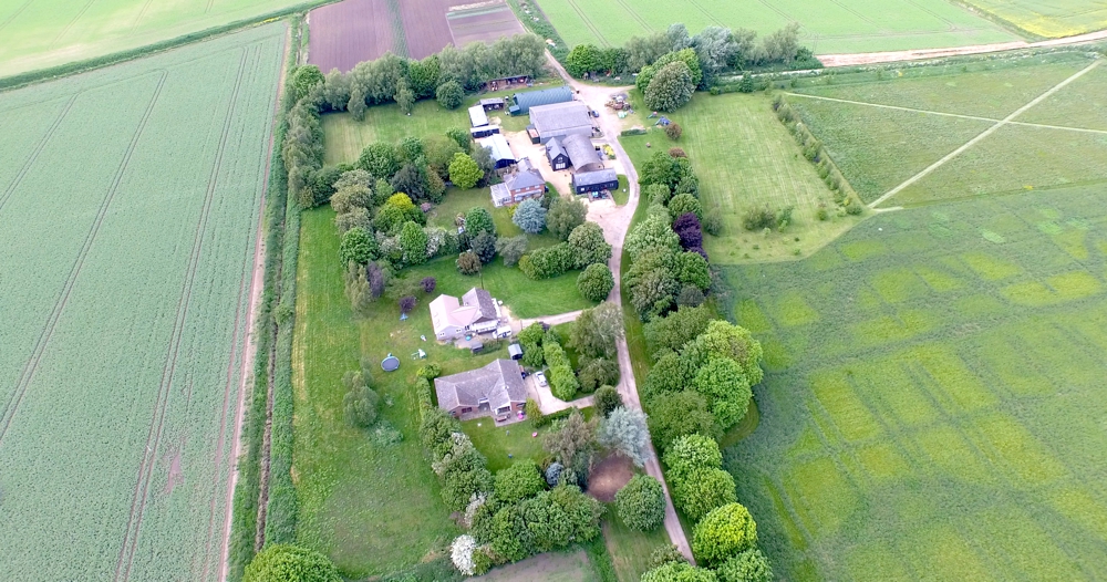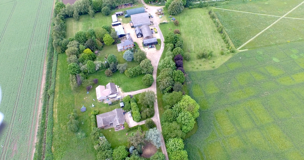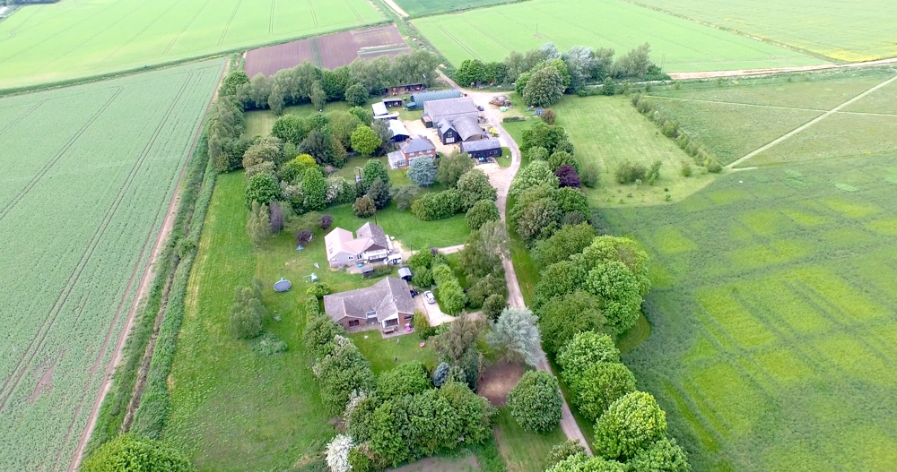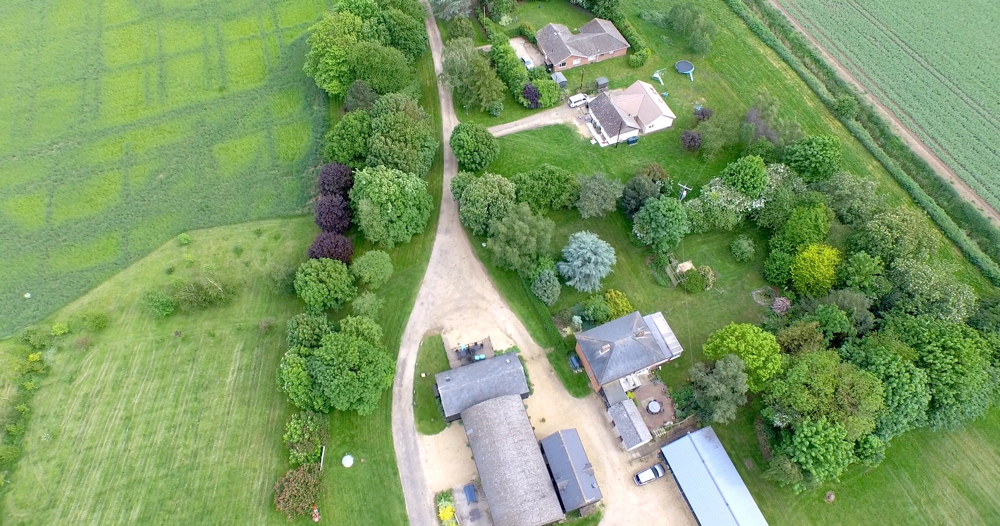 You can see 'The Kestrel' bungalow (towards the bottom of the picture), 'The Swan' and 'The Heron' (the black building facing down the driveway) and 'The Pheasant' (the black building behind Swan and Heron). The Pool complex is situated immediately behind the main house and beyond that, you can see the camping and caravanning site.